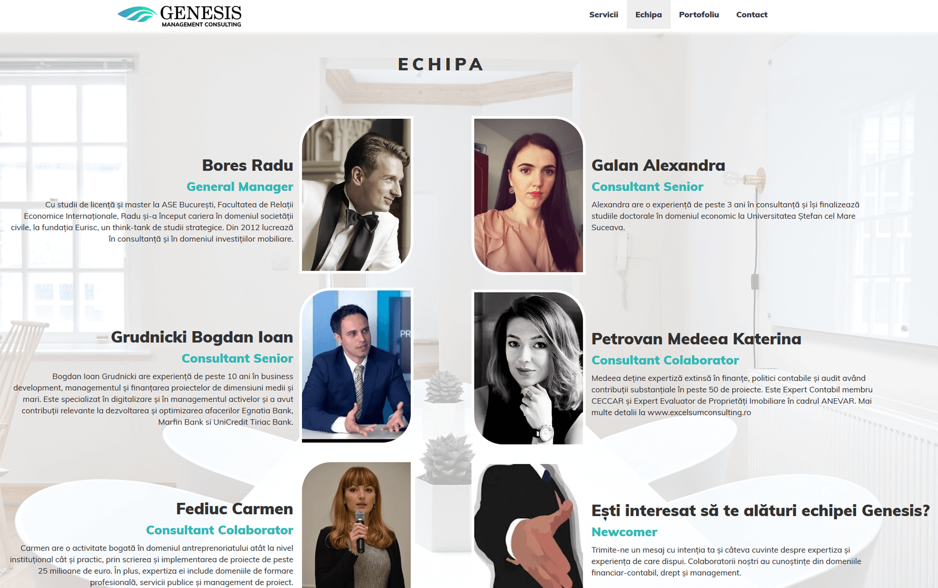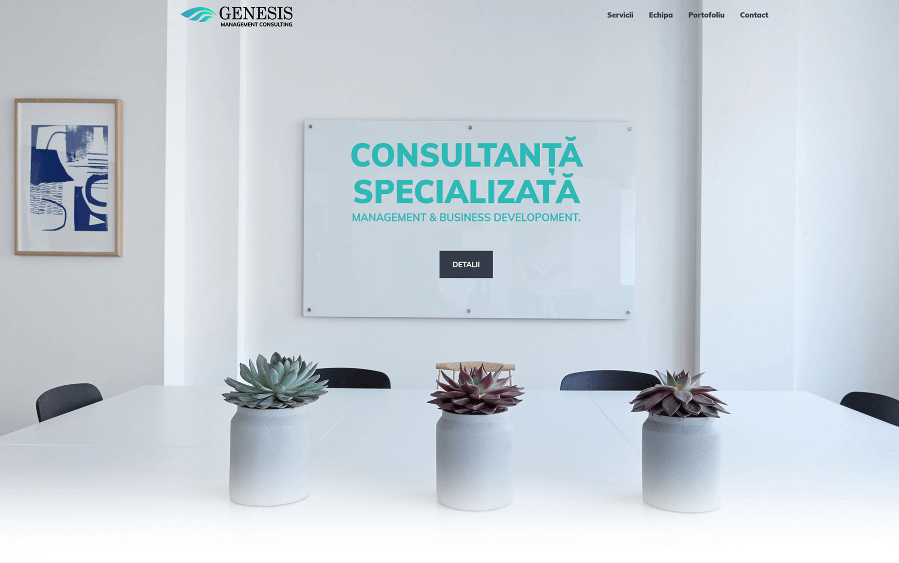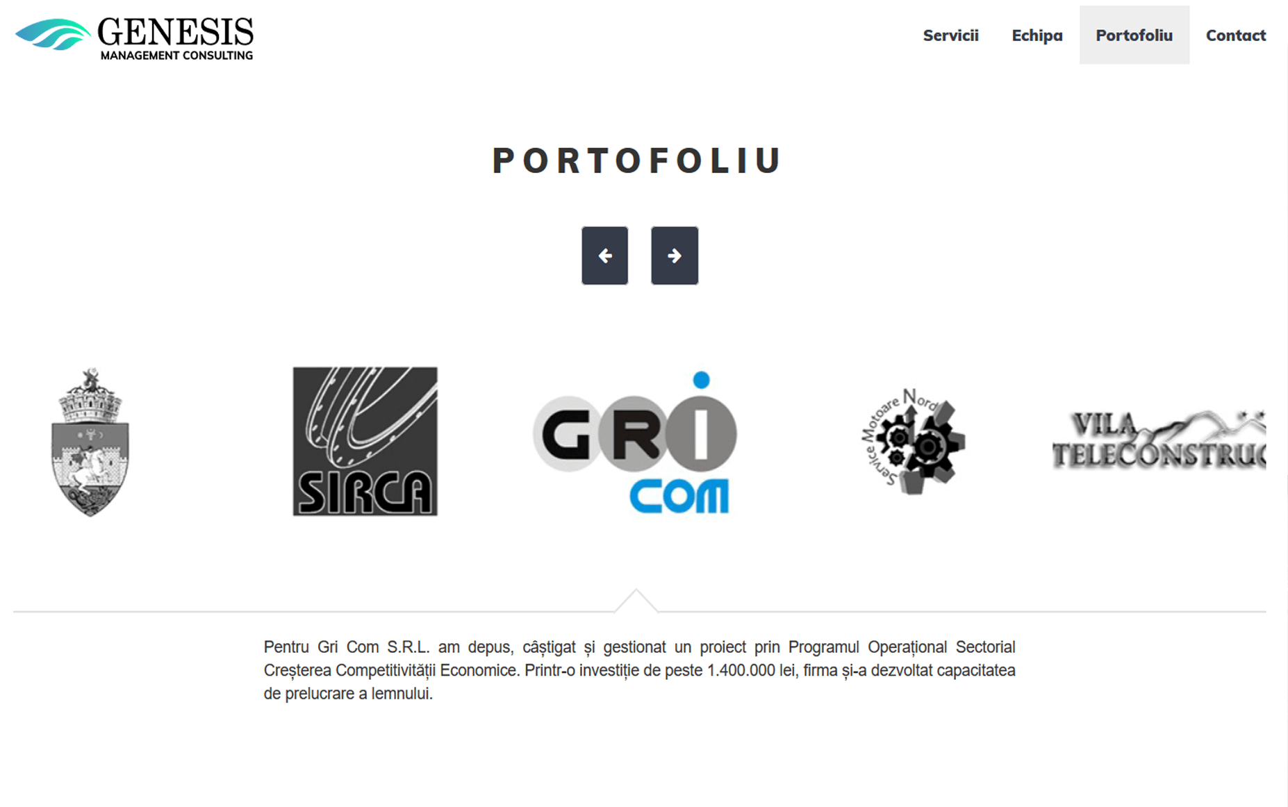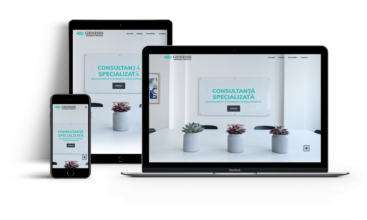 Genesis Management Consulting este un birou de consultanță dedicat companiilor mici și mijlocii. Chiar dacă prezența on-line nu este momentan un instrument de marketing important, o imagine bună crește nivelul de încredere a clienților.